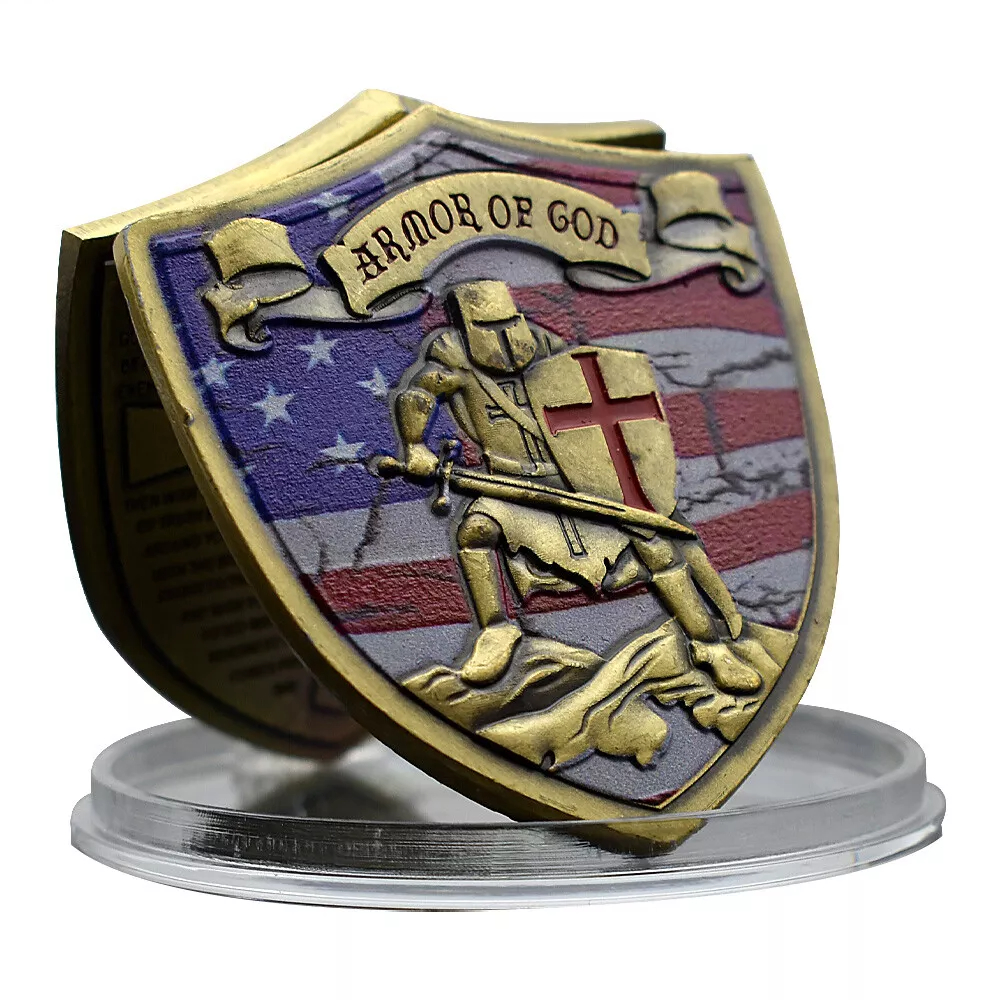 Armor of God Knights Templar US Flag Shield Challenge Coin 🇺🇸🛡️