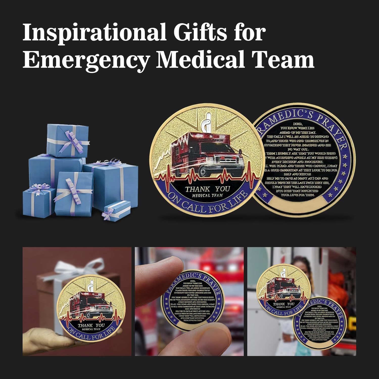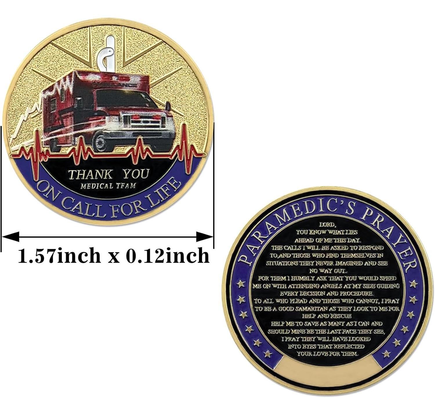 ⭐️⭐️⭐️⭐️⭐️ “This coin is absolutely beautiful! The detail is incredible, and the Paramedic’s Prayer on the back brought tears to my eyes. A perfect gift for my brother, who’s a paramedic.”