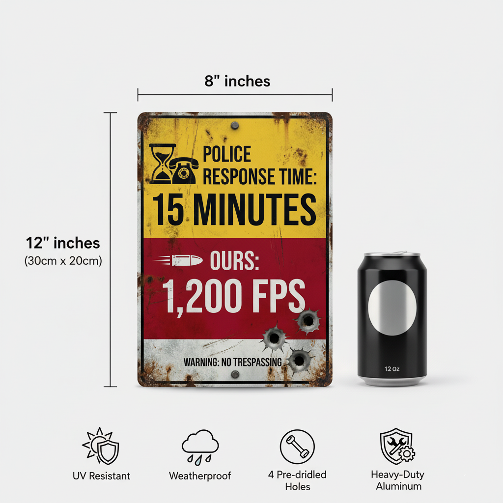 Introducing the "Response Time" Metal Sign. Forget those boring. polite "No Trespassing" signs you buy at the local hardware store. This sign delivers a clear. hilarious. and slightly intimidating message right at your front gate.